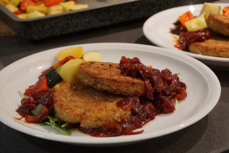 Quinoaburger met zoete uien