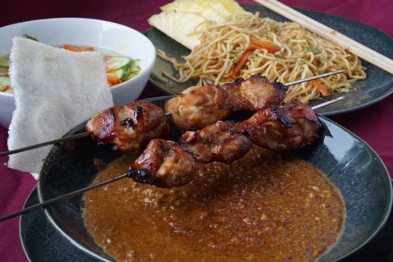 Kipspiesen met pindasaus