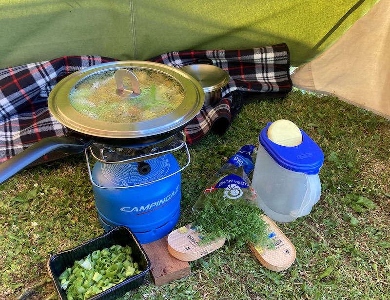 Ook op vakantie moet je lekker eten. En als je dan in een huisje, caravan of tent zit zul je ook moeten koken. Oké, je kunt alle keren uit eten gaan maar als koken je hobby is … Ik heb tijdens de vakantie alle dagen verschillende gerechten gemaakt. Soms op twee pitten maar ook regelmatig op één pit, met één koekenpan, één deksel en één spatel